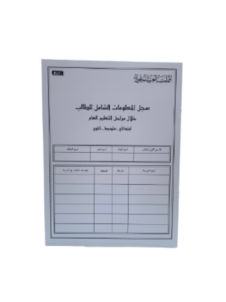 سجل شامل لحفظ جميع المعلومات الأكاديمية والشخصية للطالب، يساعد في التنظيم والمتابعة.